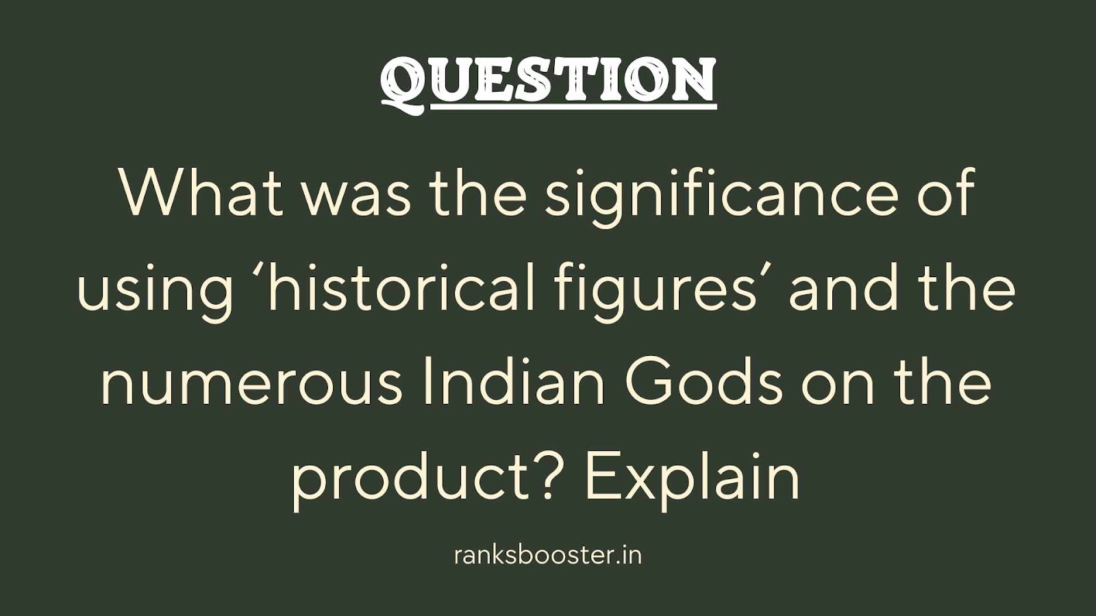 Question: What was the significance of using ‘historical figures’ and the numerous Indian Gods on the product? Explain.